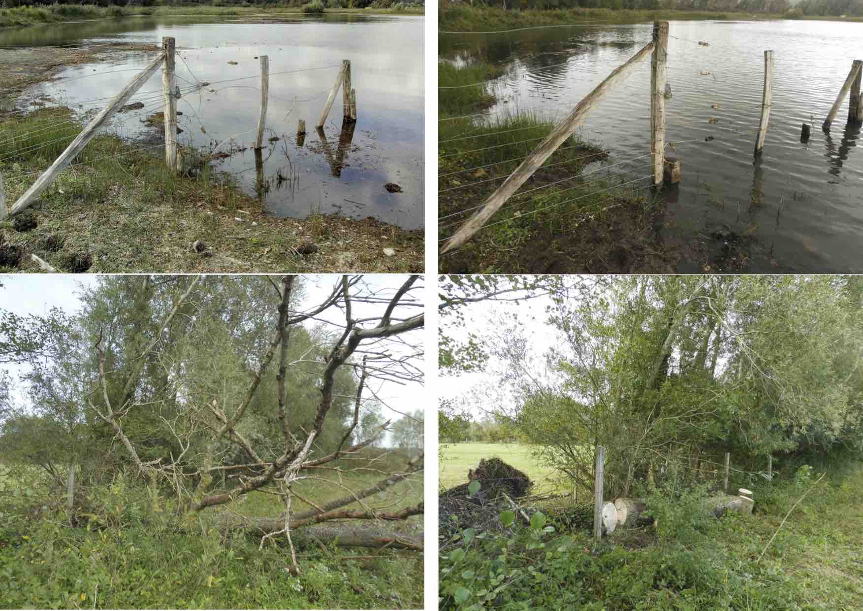 Début octobre, un petit chantier a été organisé afin de réaliser quelques travaux d’entretien : un arbre, tombé sur une clôture cet été, a ainsi été dégagé et la clôture retendue, permettant l’ouverture du parc aux juments. Et une clôture, préparée l’hiver dernier pour l’accueil des biquets mais restée inachevée en raison des niveaux d’eau trop hauts, a pu être terminée. Les animaux, actuellement en villégiature sur le refuge de Manoir Brésil, pourront retrouver la réserve de Berville au printemps prochain.