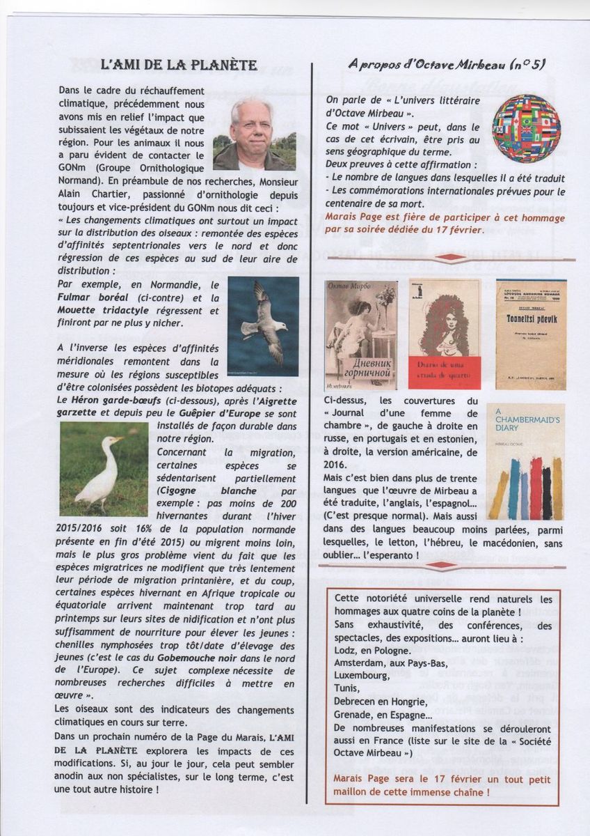 La Page du marais est la revue mensuelle de l'association "Marais page" des écrivains du Bessin. Dans le n°94, qui rencontre-t-on, après Octave Mirbeau, originaire de Trévières/14, peu connu pour avoir écrit "Journal d'une femme de chambre" adapté au cinéma par Luis Bunuel?