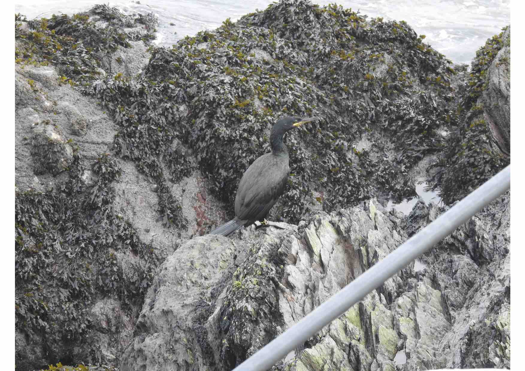 Peu d'oiseaux ont été observés en mer, mis à part, fou de Bassan, grèbe huppé, plongeon, guillemot de Troïl et pingouin torda et grand labbe. Sur l'îlot, dans les rochers, cormorans et goélands (argenté et marin), tournepierre à collier et huîtrier-pie. Le faucon pèlerin chassait à proximité et 2 bernaches cravants étaient posés, évènement inhabituel, plusieurs passereaux ont été observés : grive musicienne, pouillot véloce (2 dans les lavatères), pipit farlouse et pipit maritime, linotte mélodieuse, troglodyte mignon et bergeronnette grise ou Yarrell etc. Enfin, un phoque gris pêchait tout près dhetu rivage.