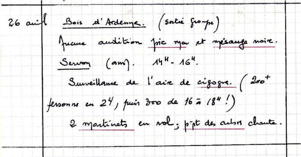 (Notes J Collette - Cahier 11 p 172, 26 avril 1992.)