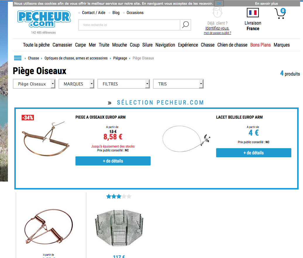Faites le compte : Quatre oeufs par nid, durant 75 ans : quelle omelette! 300 oeufs... Après la cage piège de Villedieu (message 606), la technique de Vire Normandie est plus expéditive et classique. Il reste à essayer une solution minimaliste, le piège à oiseaux (lacet à 4 euros...) proposé par "pêcheur.com". Découvert en tapant "sanglier et goudron" sur le moteur de recherche. Ces pièges non sélectifs en vente libre sont-ils légaux?...