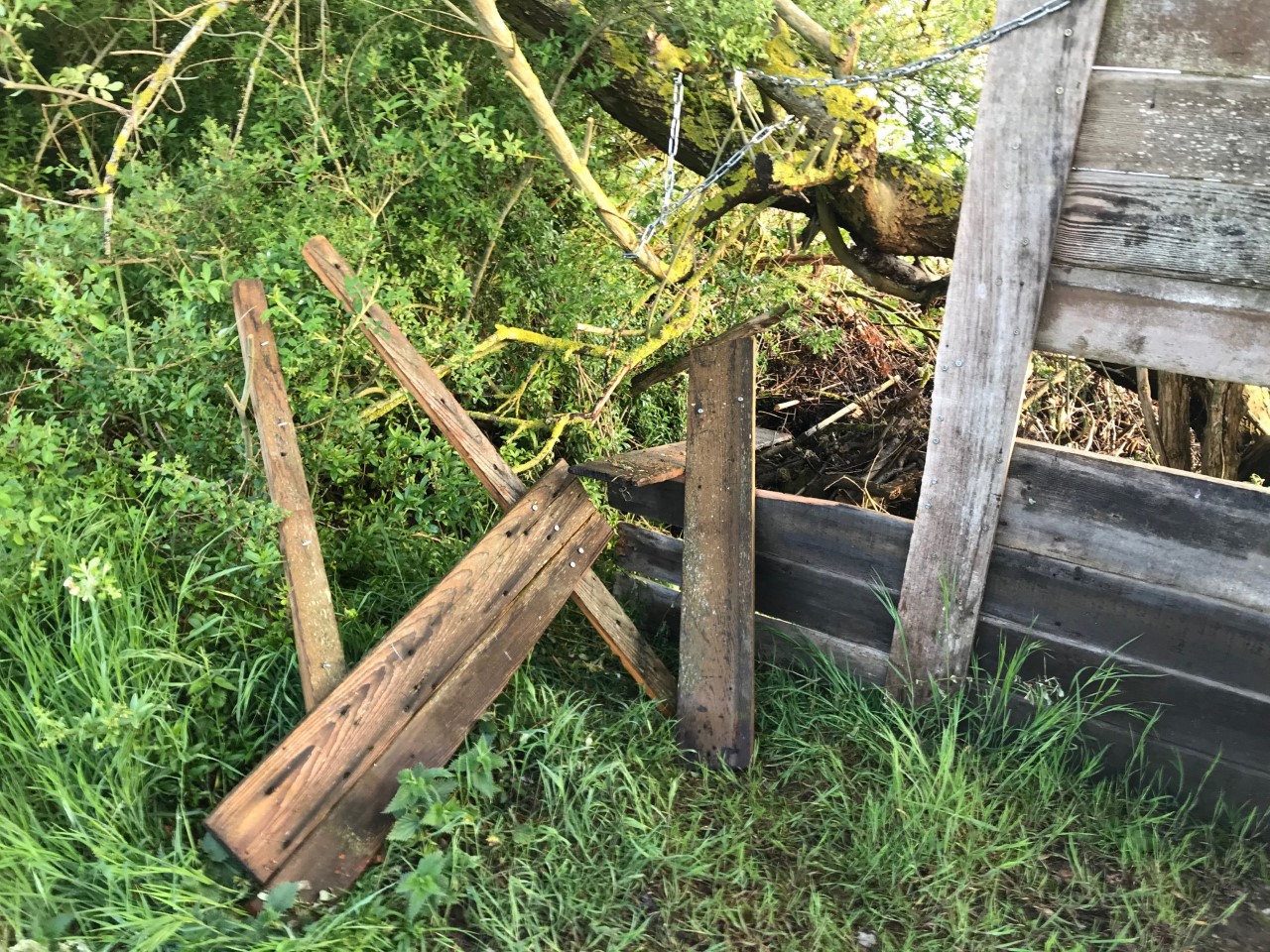 De nouvelles dégradations ont eu lieu. La palissade de l'observatoire aux mouettes a été endommagée. Je l'ai découverte ainsi lundi et je l'ai réparée ce mercredi. La vie d'une réserve, c'est aussi réparer les dégâts faits par des malotrus surtout dans une zone comme Val de Reuil où les incivilités en tout genre sont monnaie courante . Il s'avère que les dégradations ont eu lieu la semaine dernière selon un de nos usagers. L'attention et la vigilance de tous est donc de mise afin de faire remonter les informations le plus rapidement possible. Nous devons aussi intervenir aussitôt quand nous prenons les indélicats sur le fait, que se soit des cyclistes, pêcheurs, personnes posant des détritus ou dégradant du matériel ... Mais aussi ramasser ou réparer directement quand cela est possible. Car dans ce cas ci, pêcheurs et autres énergumènes ont eu tout le loisirs de braconner pendant tout le week end dernier.