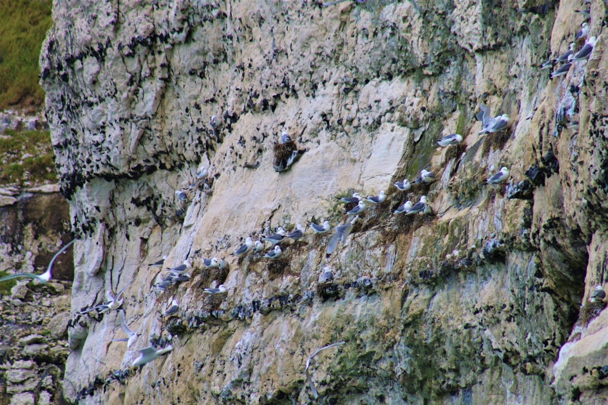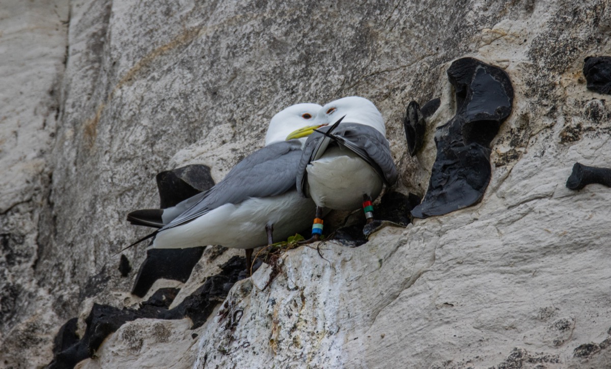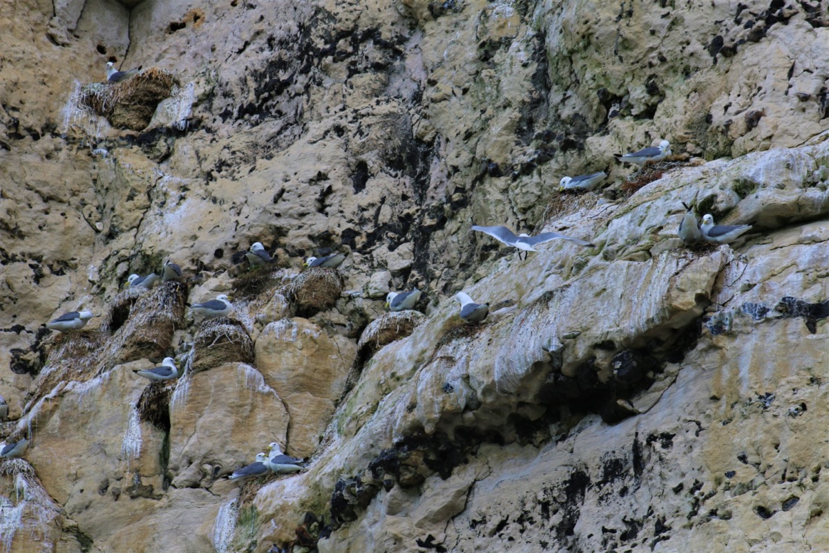 Le stage de comptage des oiseaux marins nicheurs du littoral cauchois, a été l’occasion pour l’ensemble des stagiaires d’aller visiter la réserve du Cap Fagnet. Une bien belle ambiance avec des centaines de mouette tridactyle s’affairant autour de la colonie, construisant leur nid, paradant … L’individu bagué contrôlé en juillet 2020 (cf message du 11 août 2020 sur ce même fil) a de nouveau été contrôlé cette année, cette fois sur une ébauche de nid et avec un partenaire. À suivre donc !
