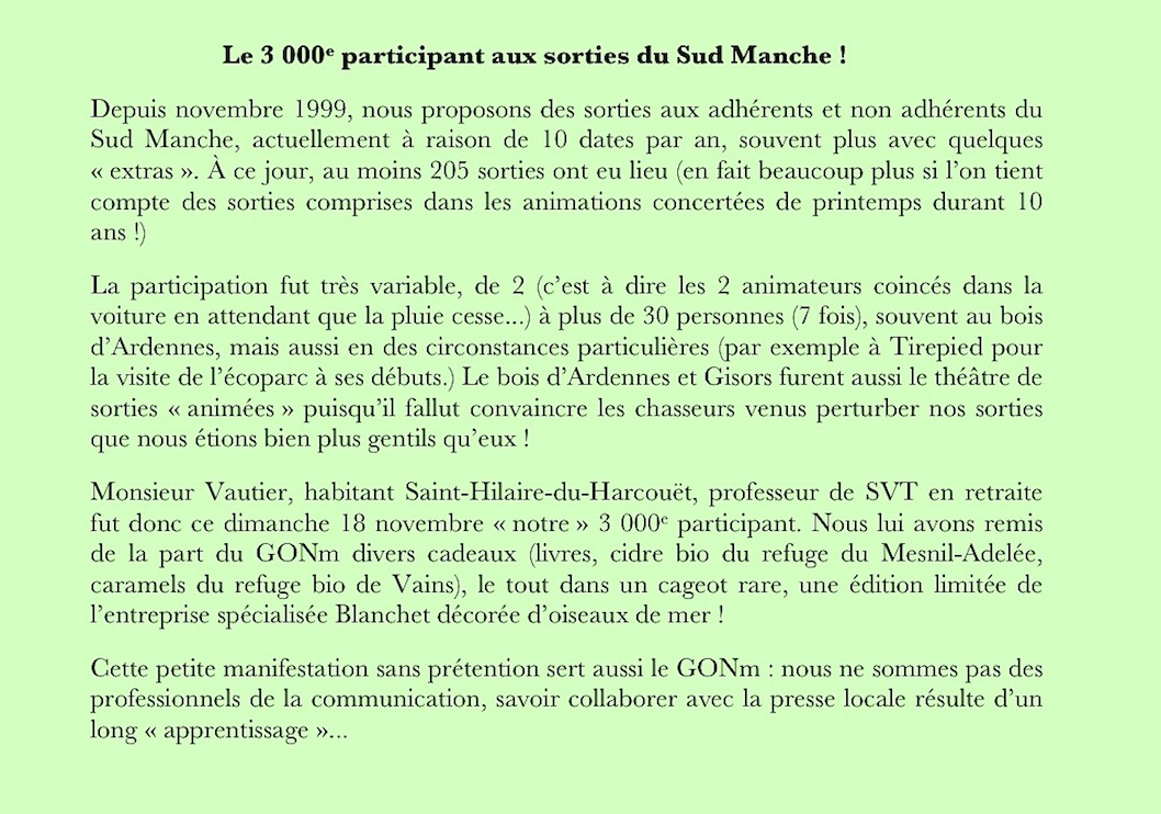 PS : enfin une explication au fait que je sois "définitivement" secrétaire adjoint du GONm; la journaliste m'a assuré que l'ajout est fait à la rédaction de Caen...