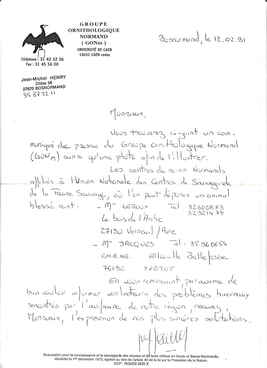 Le dessin fourni au quotidien Ouest France est d'Olivier Dubourg. C'est lui qui avait fait les démarches (radiographie, contact fichier de baguage suédois) et le texte fourni à la presse avait été rédigé un soir au café d'Avranches en pesant chaque mot pour rester à la fois dans l'objectivité et la colère.