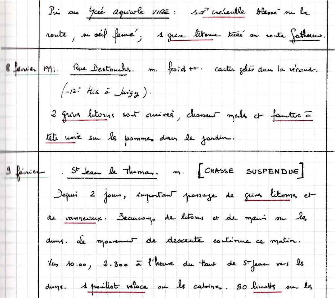 Fin janvier et surtout début février 1991, une "vague de froid neigeuse" comme la nomme les météorologues, va s'abattre sur la France, très marquée du 3 au 15 février. Il fera jusqu'à -13°C à Rouen avec une couche neigeuse de 20 cm. Le thermomètre descend à -15°C à Dieppe.La chasse sera suspendue.
