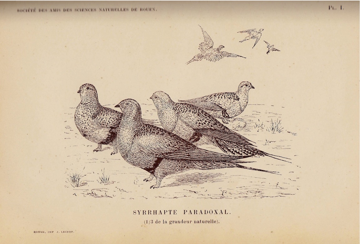 - Planche illustrant la"Note sur la venue du syrrhapte paradoxal en Normandie (avec 1 planche en bistre)"