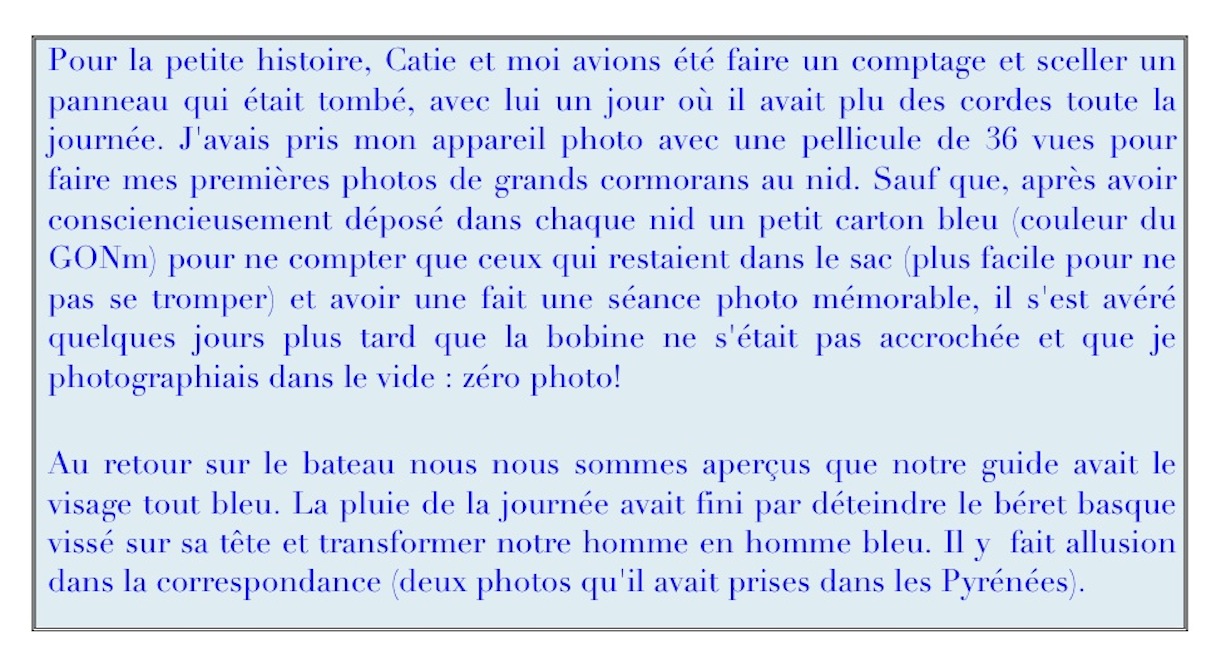 Extrait de Le Cormoran (1971) 1 : 175. Rédigé par Bernard Braillon d'après les notes de L Lecourtois, JP Dadu et Y. Paris.
