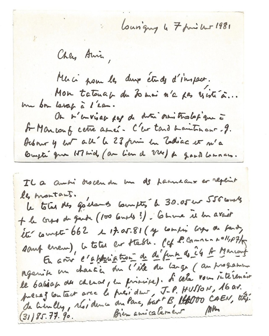 1981 07 07 - Saint-Marcouf - Bernard Braillon - Jacques Rivière - comptages - G. Debout - association de défense des iles Saint-Marcouf -