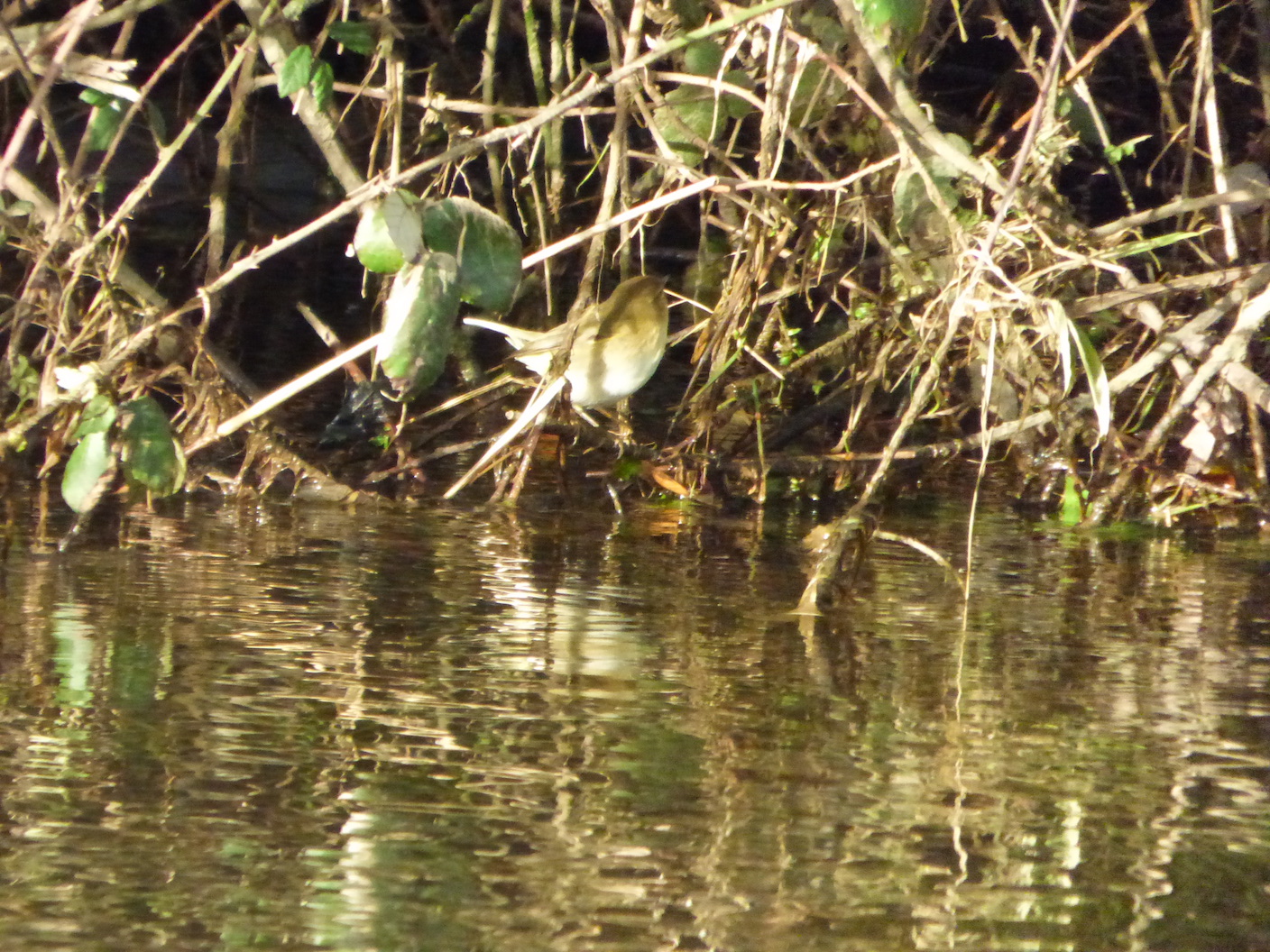 Les quelques centaines de mètres de haies et ripisylve qui ferment la parcelle de 2 ha en réserve sont prisées du pouillot véloce en hivernage. Ainsi, le 11 décembre dernier, 8 sont comptés lors du relevé. En période de "hautes eaux" comme actuellement, le comportement de chasse des véloces est typique : ils délaissent les branches où ils chassent habituellement pour se concentrer sur les très bas perchoirs, parfois au ras de l'eau.