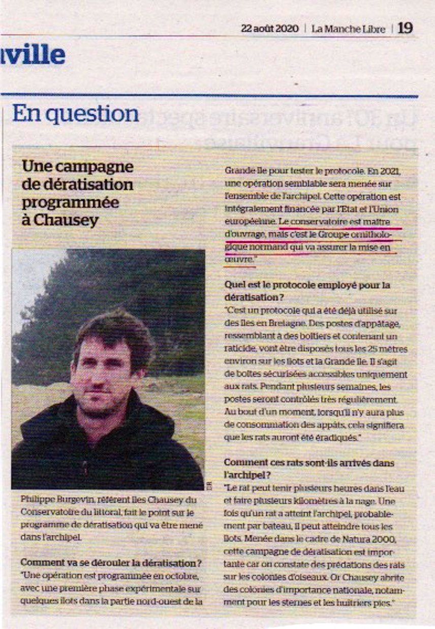 Bientôt, va débuter une grande campagne de dératisation des îlots chausiais, fruit d'une coopération Conservatoire du Litttoral et GONm.