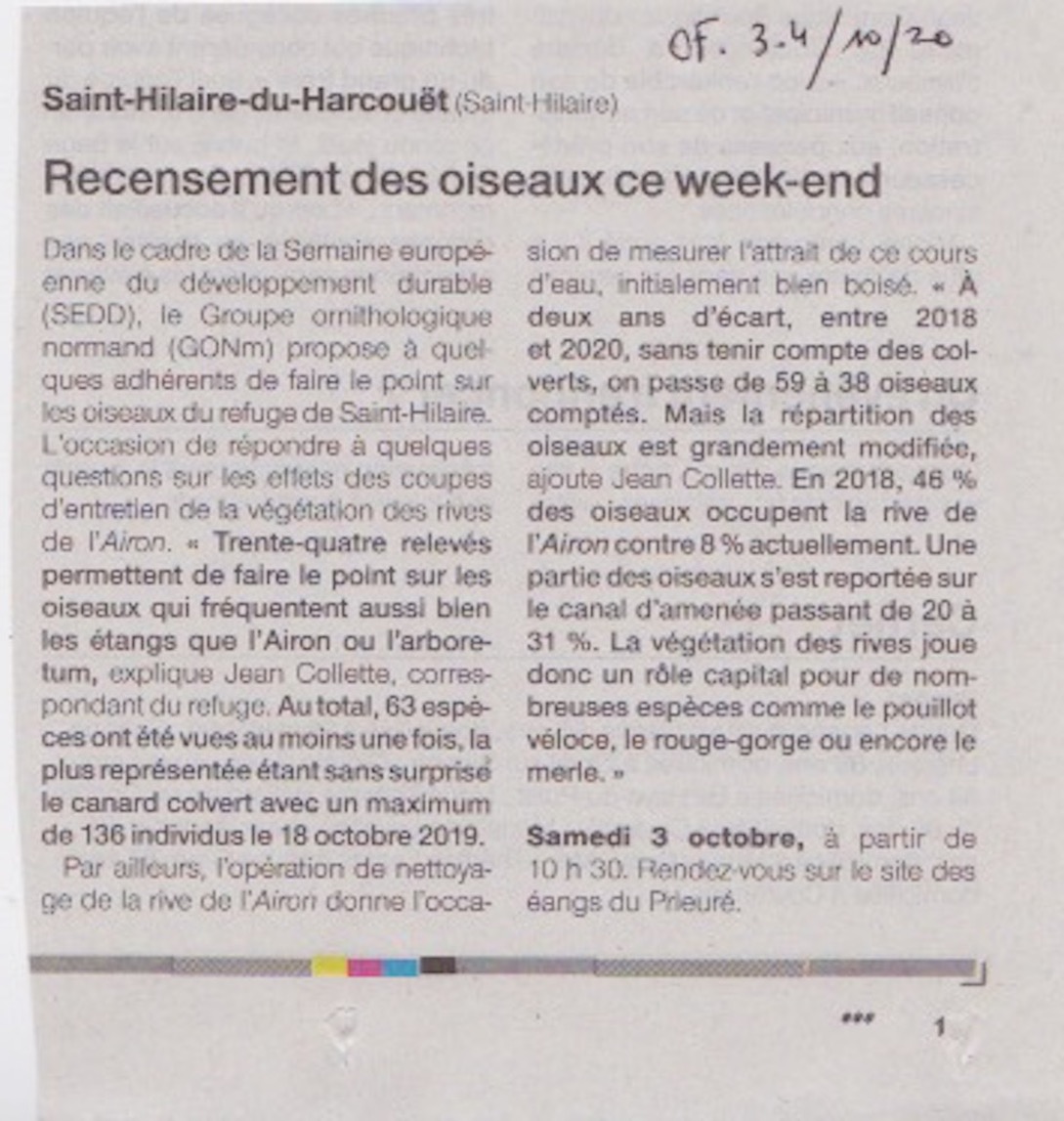 Parus dans Ouest-France Caen, trois articles éclairent sur des espèces plus ou mois connues du public estival, cigogne blanche, gorgebleue à miroir et gravelot à collier interrompu. Nicolas Klatka et Alain Chartier ont fourni les informations au rédacteur.