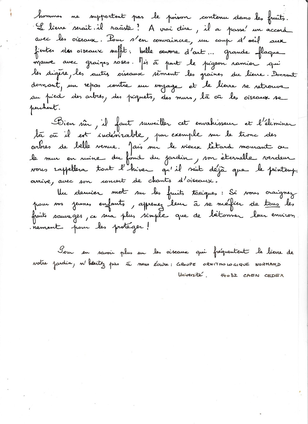 Conseils de saison, planter en pensant aux oiseaux ou réfléchir à l'enjeu que représentent certaines plantes comme le lierre. Des textes généralistes sont proposés à la presse. Jean-Michel Henry a pu intégrer ces propositions dans une série dite "Les oiseaux gagnent à être connus" dans les éditions du Courrier cauchoix. L'article a au moins été lu par l'administration, le Service régional de la protection des végétaux (DRAF de Rouen) nous ayant rappelé la question du feu bactérien qui interdit la plantation d'un certain nombre d'essences, dont malheureusement l'aubépine. Rien n'empêche de transplanter un pied spontané tel que les oiseaux en sèment une multitude chaque année, par contre la vente semble interdite. On aimerait que l'administration soit aussi attentive aux milliers de kilomètres de haies taillées aux engins mécaniques qui doivent transmettre sur les mêmes distances toutes les maladies potentielles des végétaux blessés. Ainsi, les travaux de "restauration" des ripisylves en cours ne doivent pas être très gênés par le risque de contamination des aulnes des rives par la maladie due à Phytophthora alni.