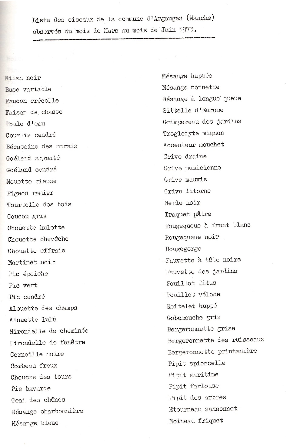L'enquête ornithologique n'a pas concerné la période hivernale. La plus belle observation dans la liste est à mettre au compte du pic cendré! Coïncidence, plus tard, une commande de la DRAE pour la mise à jour des données naturalistes sur la ZNIEFF du bois de Blanche Lande (Argouges - Montanel) me donnera l'occasion d'entendre "mon" dernier pic cendré bocager le 4 avril et le 4 mai 1999 autour et dans le bois de Blanche Lande. Les écologues de 1973 ne savent pas encore que l'espèce va complètement disparaitre du bocage remembré. De même, les commentaires restrictifs sur la présence des granivores semble bien dépassés au vu de l'état démographique de ces espèces actuellement.
