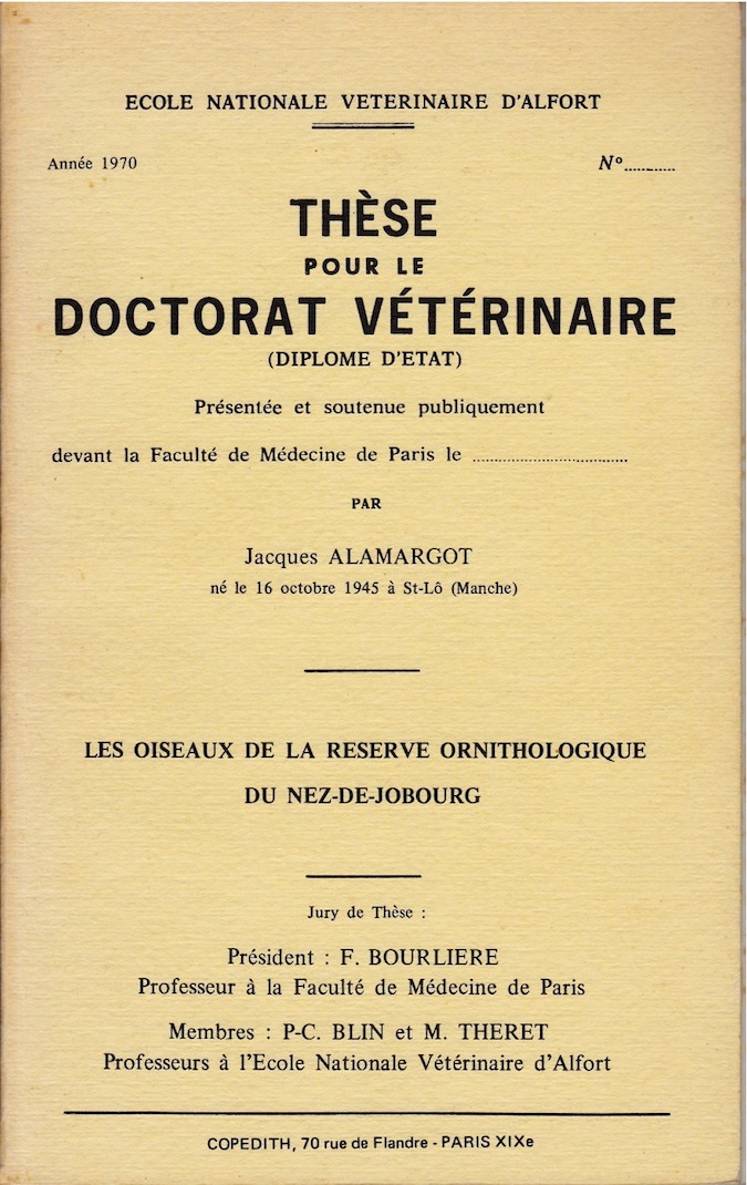 A la fin de ses études à l'Ecole nationale vétérinaire d'Alfort, Jacques soutient une thèse sur un sujet original à l'époque : "Les oiseaux de la réserve ornithologique du Nez-de-Jobourg". Des données allant de 1953 à 1969 sont ainsi traitées, dont celles d'Auguste Samson dont la personnalité a déjà été évoquée sur ce fil des archives. Une étude fine de la localisation de l'aire du couple de grand corbeau de 1963 à 1969 illustre la connaissance intime des lieux de l'observateur.