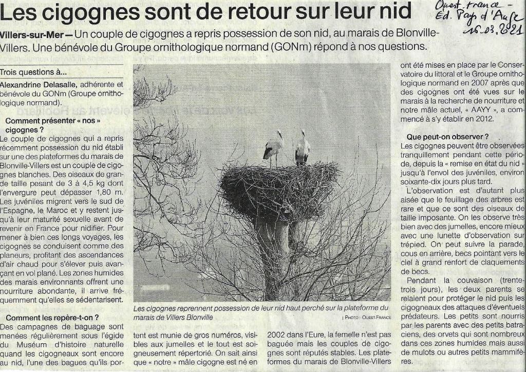 Alexandrine Delasalle a répondu aux questions de la correspondante de Ouest-France à propos des cigognes blanches.