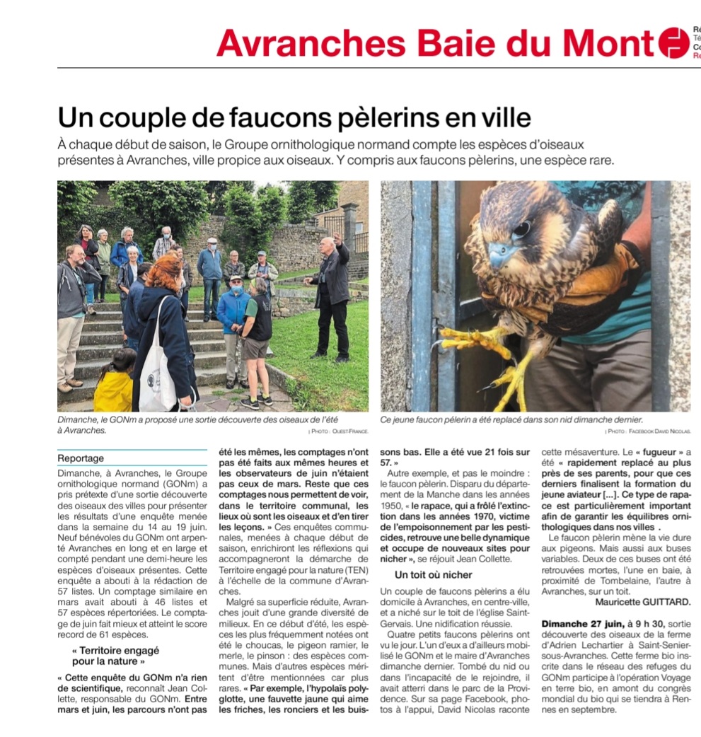 Comme on le lit dans l'article d'Ouest-France, le faucon pèlerin a participé à la fête.