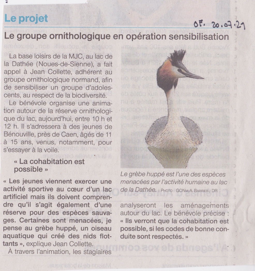 Pour l'occasion, deux articles publiés par Ouest-France ont rapporté cette participation. Désolé pour Sylvain Hamel, le conservateur actuel de la réserve, je n'ai pas cherché à le "destituer", la journaliste s'est un peu mélangé les pinceaux dans la chronologie de l'histoire de cette réserve du GONm...L'essentiel est que l'association apparaissent dans les colonnes locales, ce qui va me permettre de porter à la connaissance de la municipalité notre étonnement de voir comment l'entretien des rives est exagéré et la pédagogie de la nature difficile à mettre en œuvre dans un tel environnement appauvri. L'idéal serait que, pour chaque groupe de stagiaires participant à des activités sportives sur la base de la Dathée, un créneau soit prévu dans le planning pour expliquer aux jeunes en quoi ils cohabitent avec des espèces sauvages dont ils doivent aussi respecter la présence. L'article de la Manche libre résume les objectifs du centre de loisirs; les animations nature classées comme "ludiques" ne sont peut être pas valorisées comme pédagogiques. (En lien avec l'animateur hilare?)