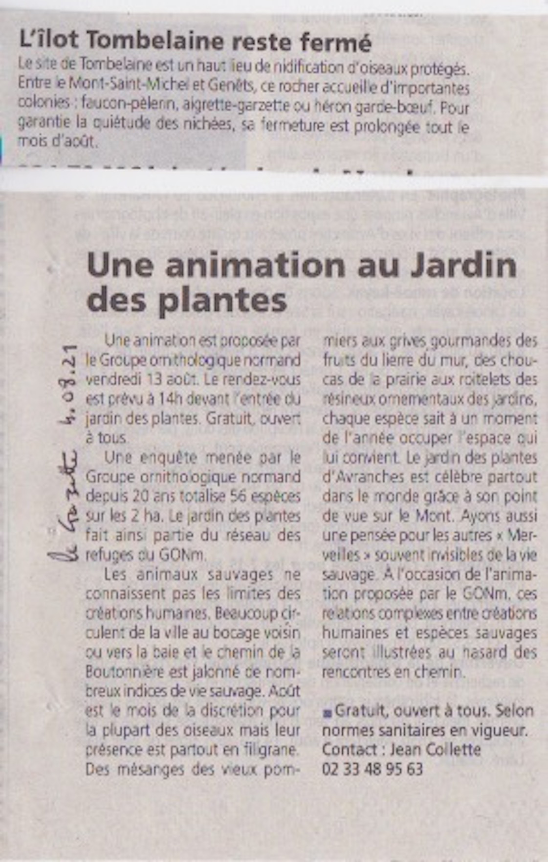 Contact : Jean Collette 02 33 48 95 63