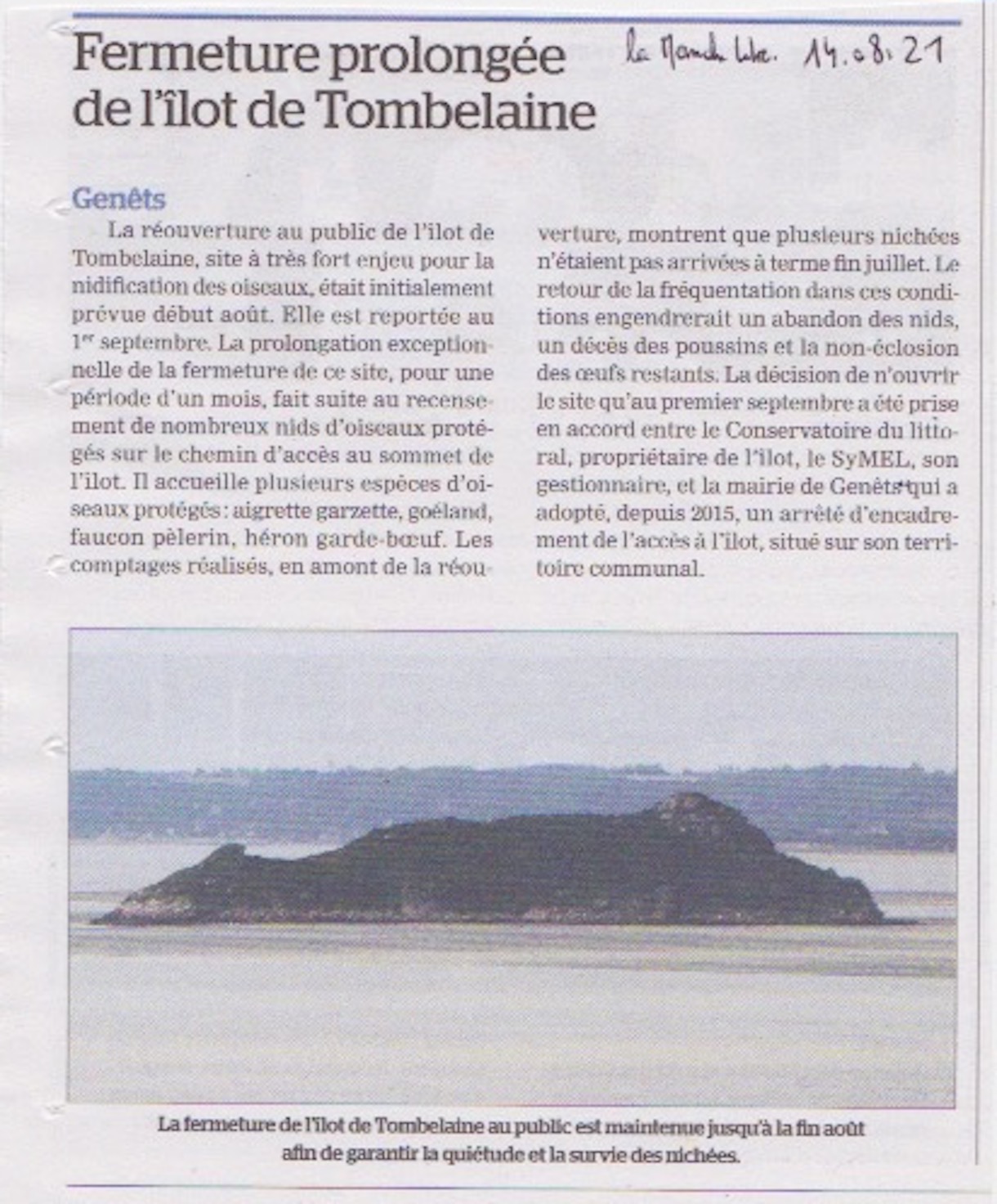 977 suite ; Animation annoncée et information essentielle pour la réserve de Tombelaine!