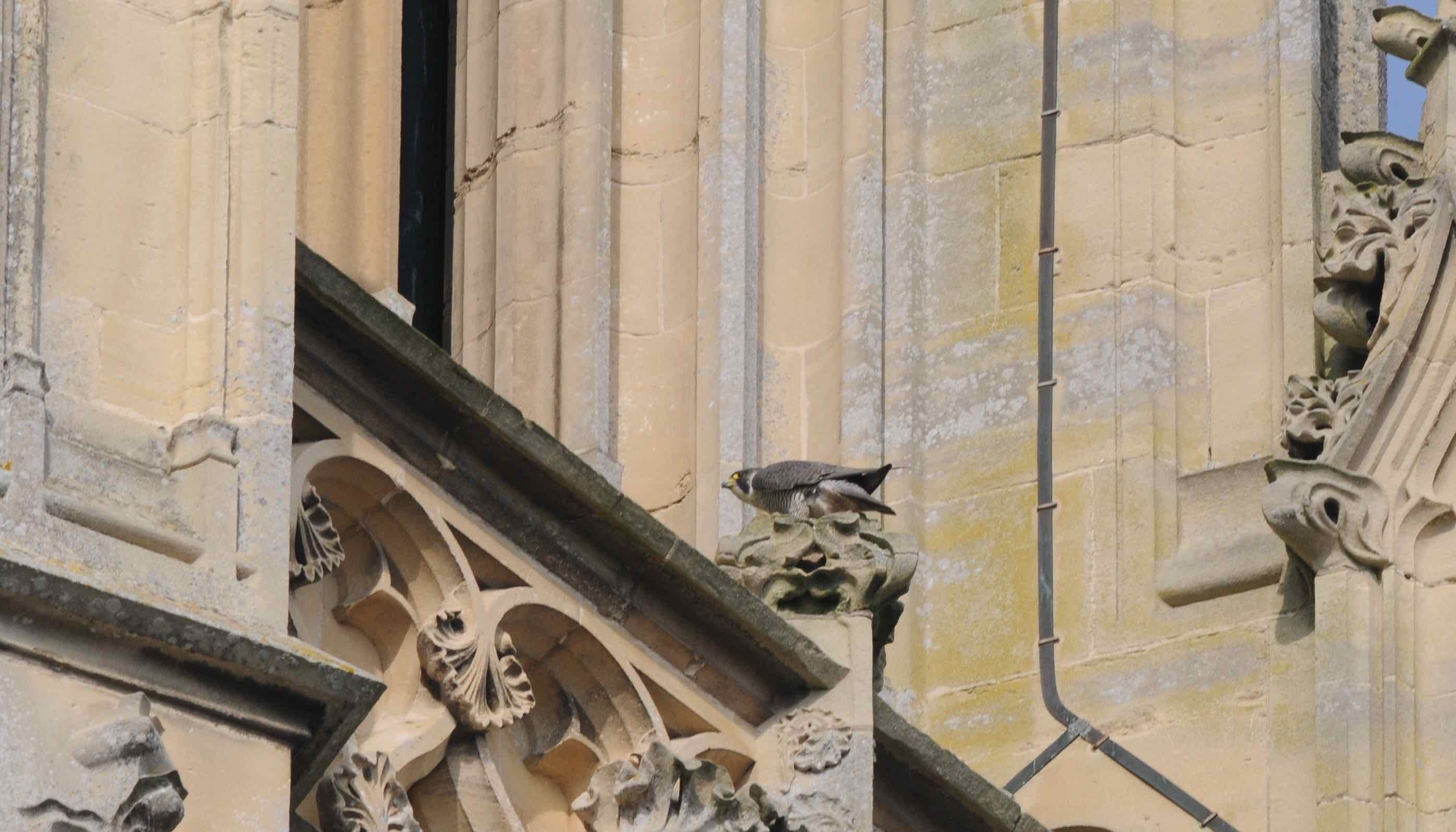 Le faucon pèlerin a déjà été vu plusieurs fois sur la ville de Bayeux, mais en ce mois de février 2016, l'espèce est en phase d'installation sur la cathédrale. Le 27 février 2016 en matinée un couple d'adultes tourne et effectue des poursuites autour du clocher. En début d'après-midi, le couple attaque une buse variable qui passe dans le secteur à grand renfort de cris de guerre. Poursuites entre partenaires, vols de parade, visites de sites potentiels de nid par la femelle, tout laisse à croire qu'un cantonnement est en cours.
