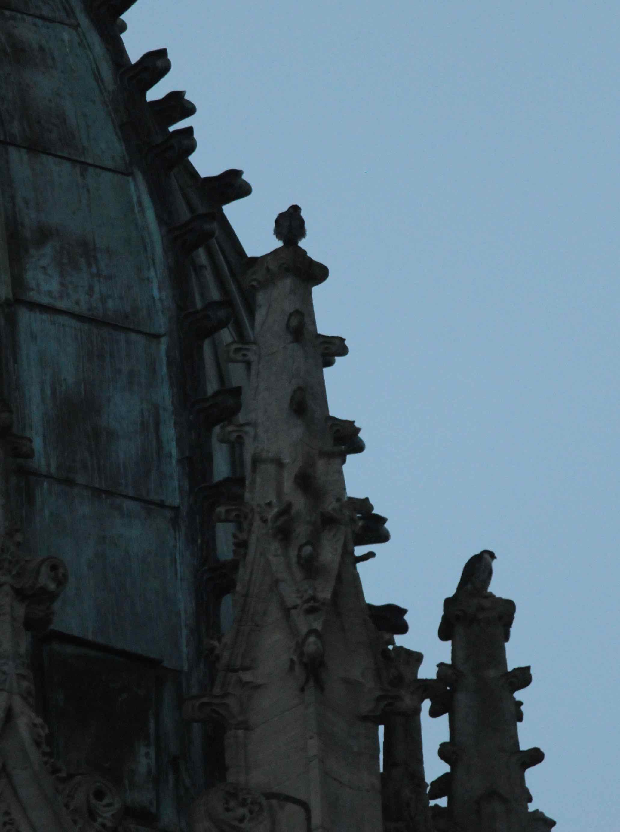 Semaine de doute : quelques passages à vrai dire rapides à proximité de la cathédrale n'avaient pas permis de revoir les faucons.