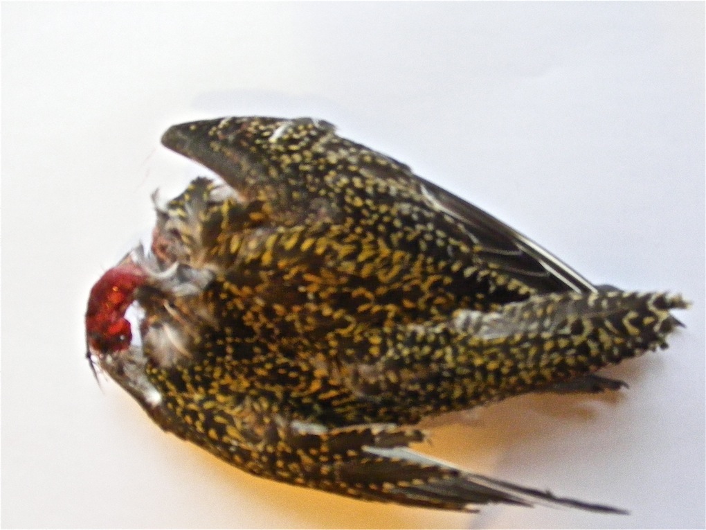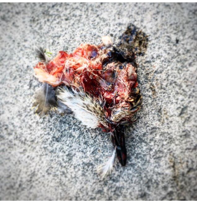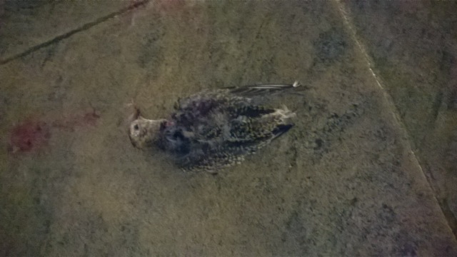 Marc Le Rochais nous envoyait ce courriel : "oiseau trouvé mort au pied de la cathédrale de Bayeux, partiellement dépecé".