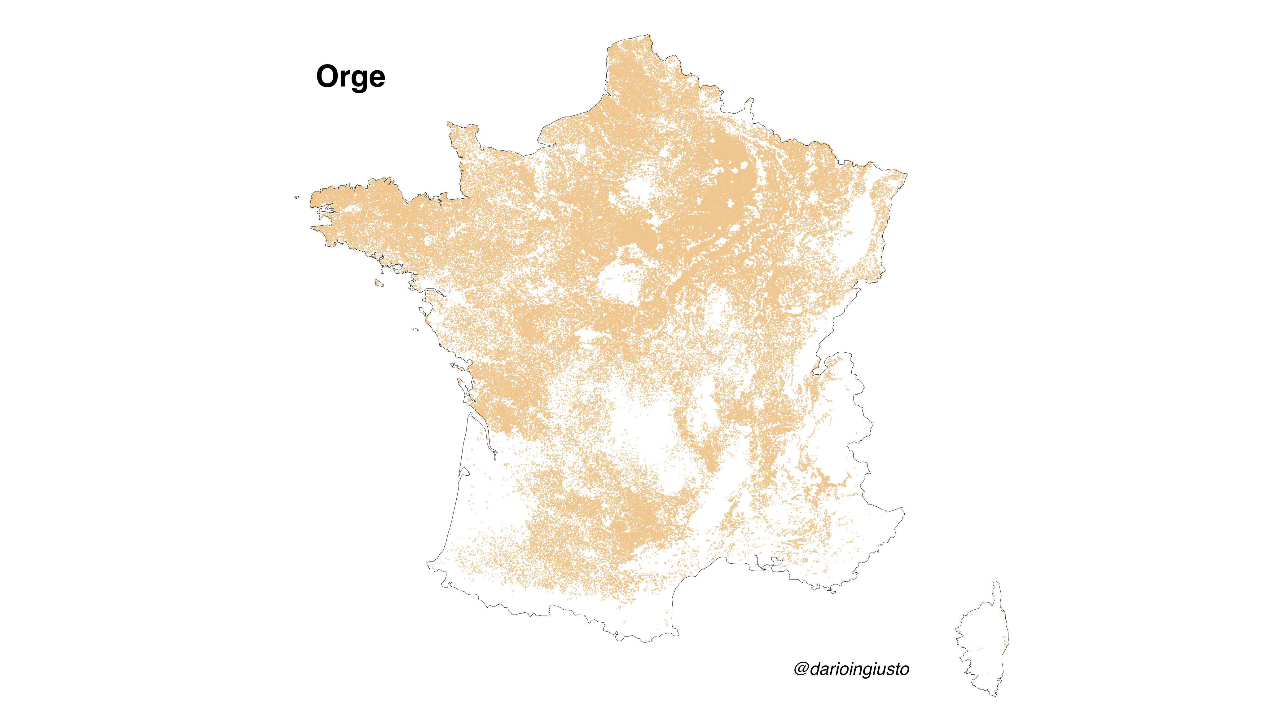 Des cartes ont été établies à partir de ces données, à découvrir ici :Le registre parcellaire graphique est une base de données géographiques servant de référence à l'instruction des aides de la politique agricole commune (PAC).