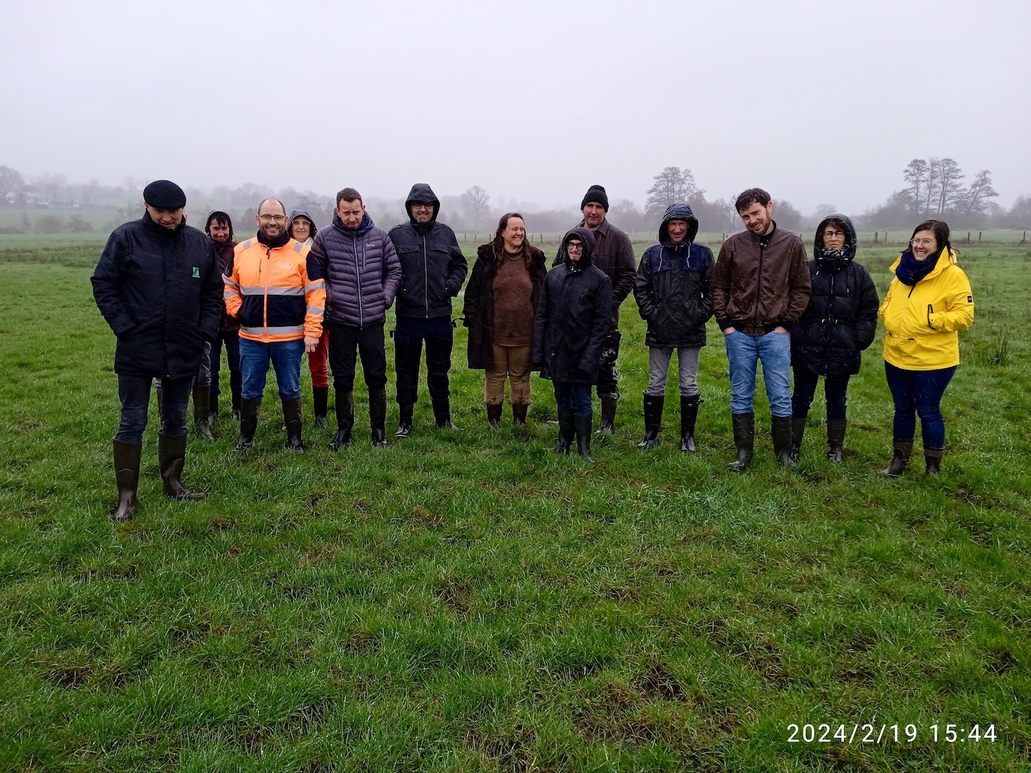 Le groupe à l'Orange (après 2 h sous crachin efficace!)<br />Photo J Collette