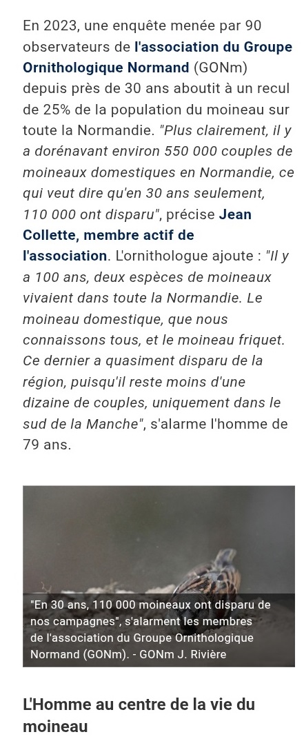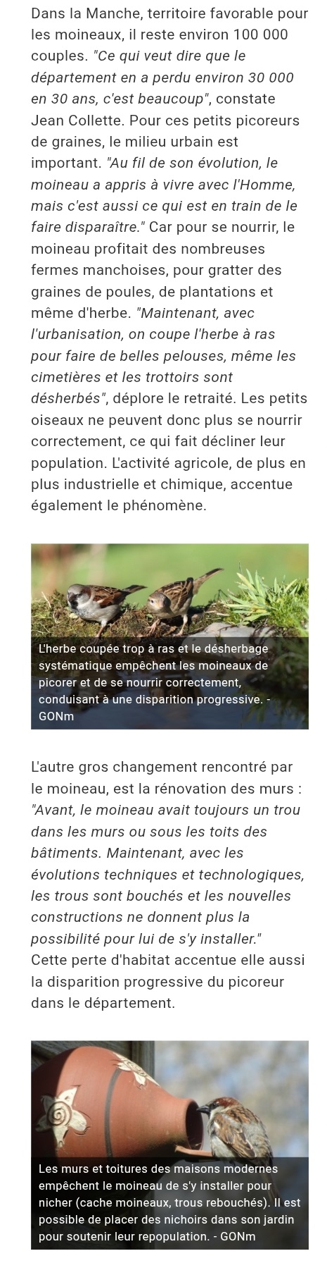 Positif, on parle du GONm, de l'enquête Tendances; par contre, la confusion entre "perchoir" et nichoir de la publication papier est regrettable et il est peu probable que j'aie parlé des miettes de pain! Quant à mon âge, il a peu de rapports avec le sujet! Encore une fois, des excuses auprès des collègues auteurs des photos, les crédits sont anonymes malgré les demandes précisées à chaque occasion.
