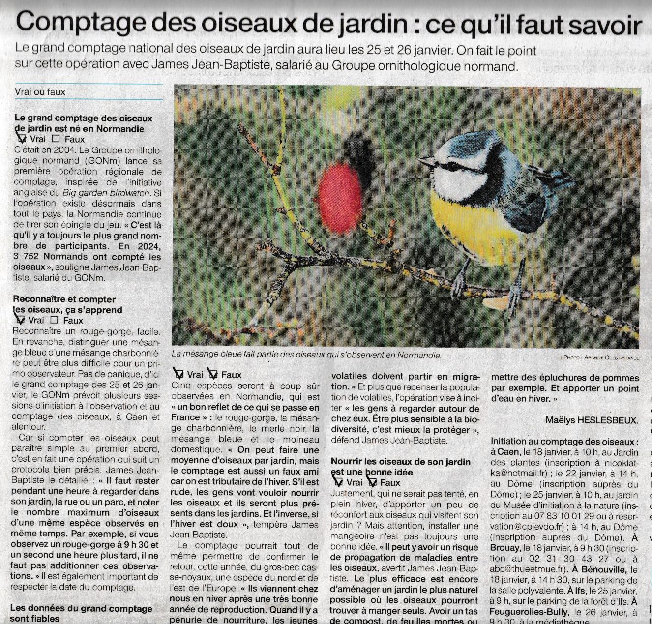 Les articles rendant compte d'une animation préparatoire au grand comptage fleurissent rapidement. Ci-dessous un article "survolant"de Ouest-France à Cherbourg.