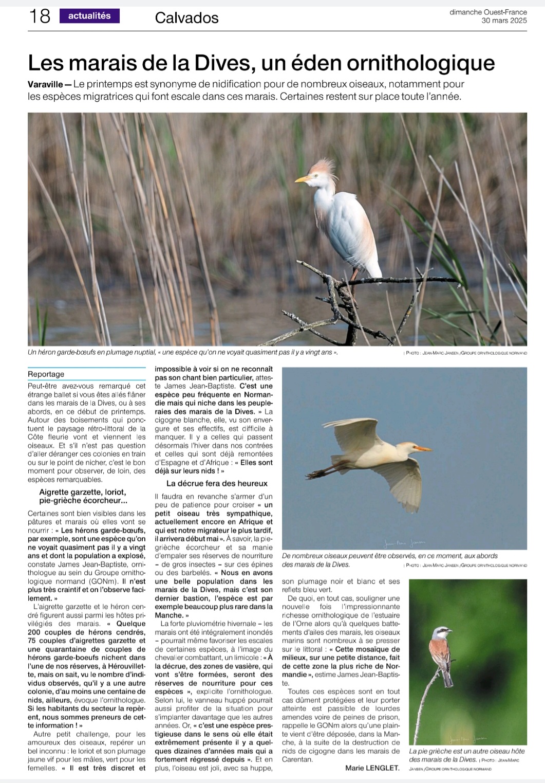 J'avais adressé une petite note à la journaliste de la rédaction locale présentant l'espèce et le déroulé de sa reproduction locale depuis 2021.