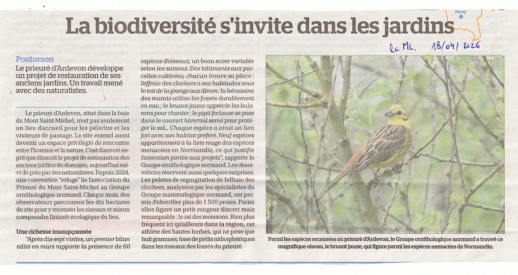 Un résumé de quelques lignes proposé aux 3 titres locaux du Sud-Manche pour rapporter quelques exemples de constats. Basiques pour l'ornitho, simples pour le lecteur de base. J'avais proposé une photo d'oiseau. Le bâtiment (bien connu localement) apparait comme un sujet plus accrocheur pour le rédacteur. L'important c'est la publication...