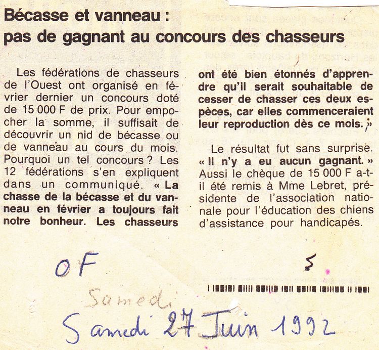 Retrouvé par hasard dans un carnet d'observation, cet article illustre l'humour dont ont pu faire preuve certaines fédérations de chasseurs, il y a 20 ans.