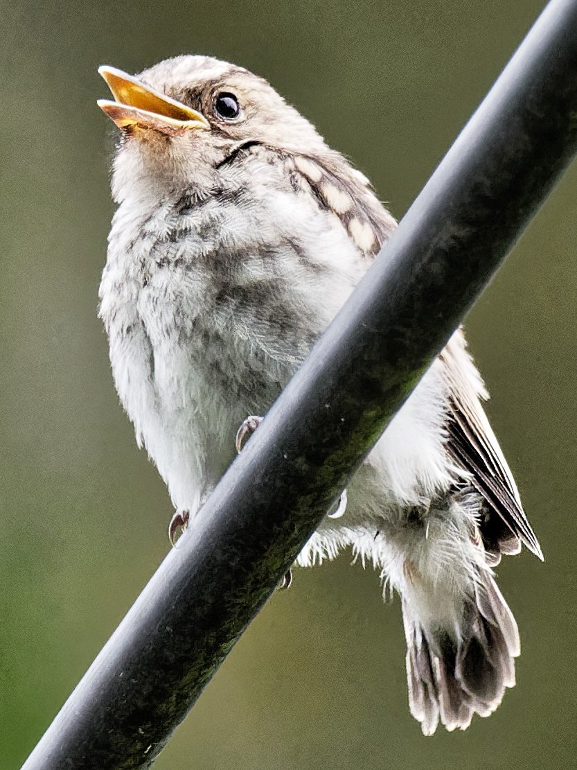 Une petite promenade dans le bocage de Blonville sur Mer à 1 km du marais, m'a permis d'observer un groupe de 5 ou 6 jeunes gobemouches gris sur un fil électrique. Un seul a accepté de prendre la pose..