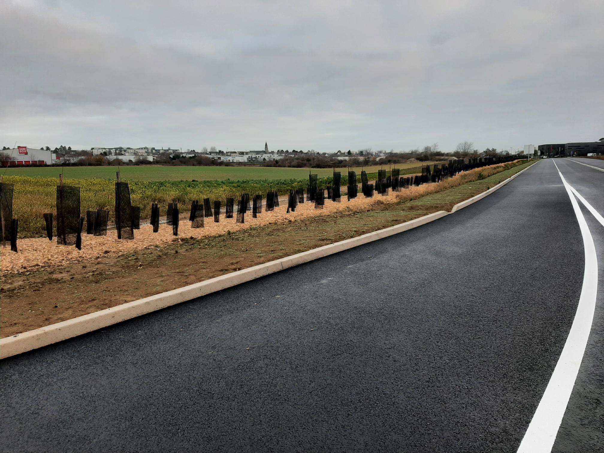 Une note positive malgré tout : ce nouveau boulevard est déjà bordé de jeunes plants. Comme c'est une zone de cultures, il n'y avait aucun arbre auparavant dans ce secteur.