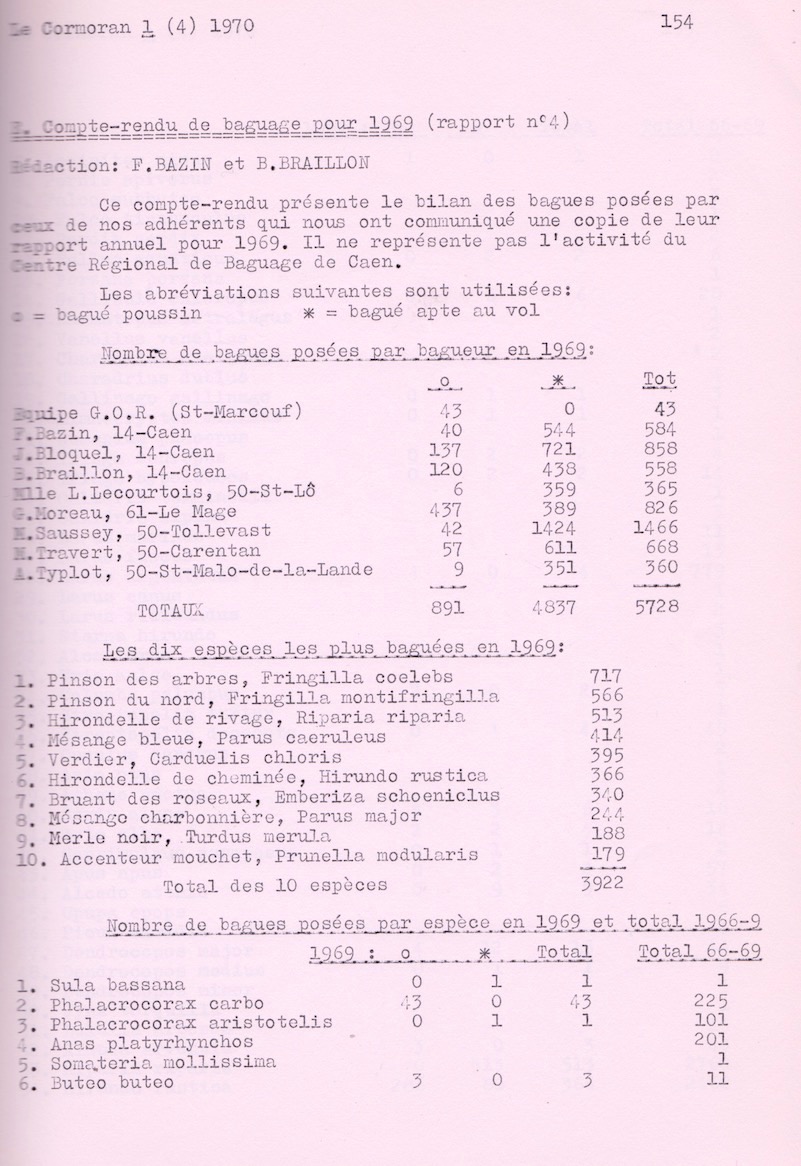 1970 00 00 - baguage - compte-rendu n°4 - le Cormoran-
