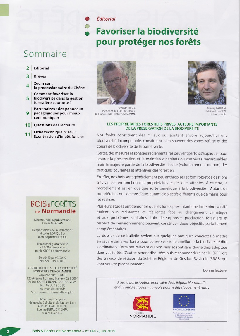 Le GONm s'est longtemps investi aux côtés de l'ONF aussi bien que du CRPF, en particulier lors de la mise en place de la certification PEFC (le premier vice président était un membre du GONm, représentant aussi FNE.) Nous sommes heureux de lire les préconisations présentées dans ce bulletin : on y retrouve quelques unes des préoccupations majeures des ornithologues normands (en particulier en ce qui concerne la gestion des arbres morts.)