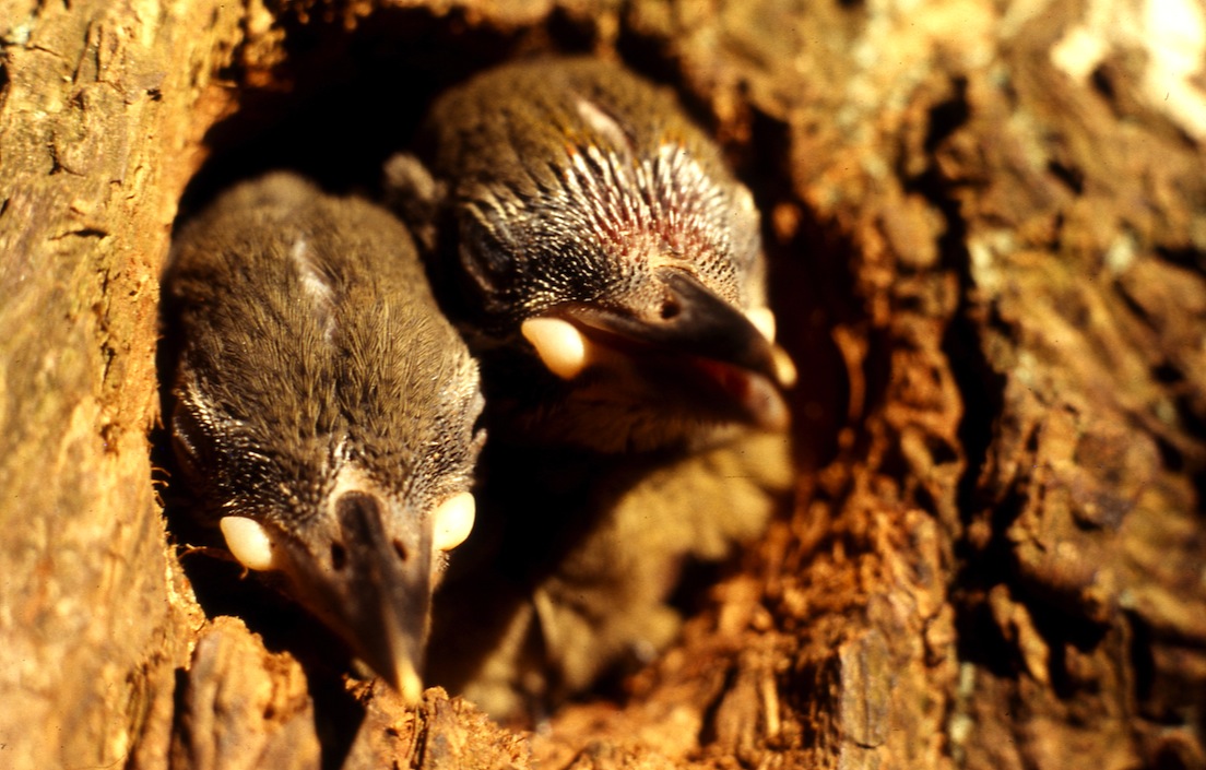 Premier indice de nidification, tectrice sur entrée de cavité.
