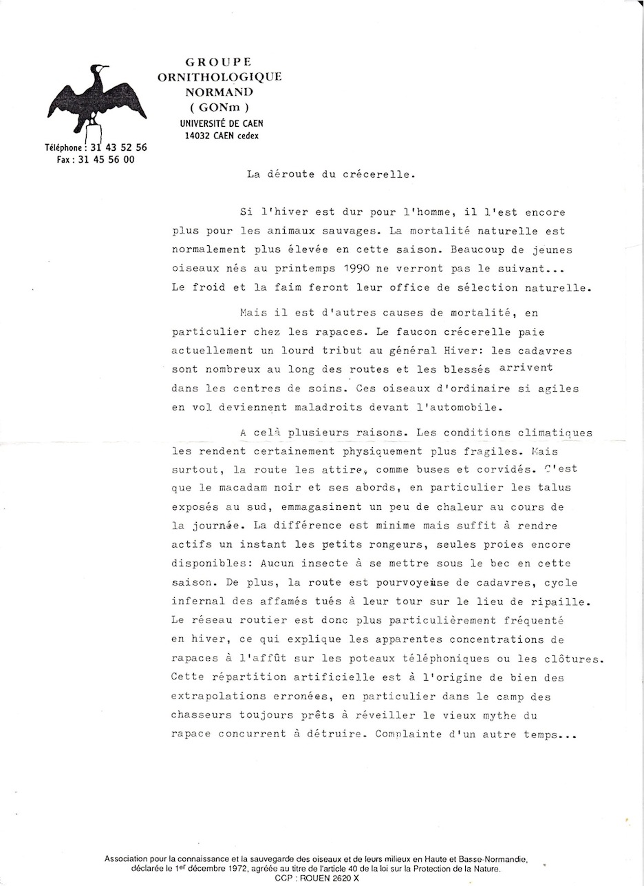 1991 01 31 - photo - cadavre - faucon crécerelle -