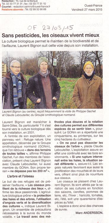 Cet article est le résultat d'un entretien avec une journaliste de la Presse de la Manche qui s'est déroulé dans l'exploitation maraîchère de Laurent Bignon, refuge du GONm à Saint-Gilles.