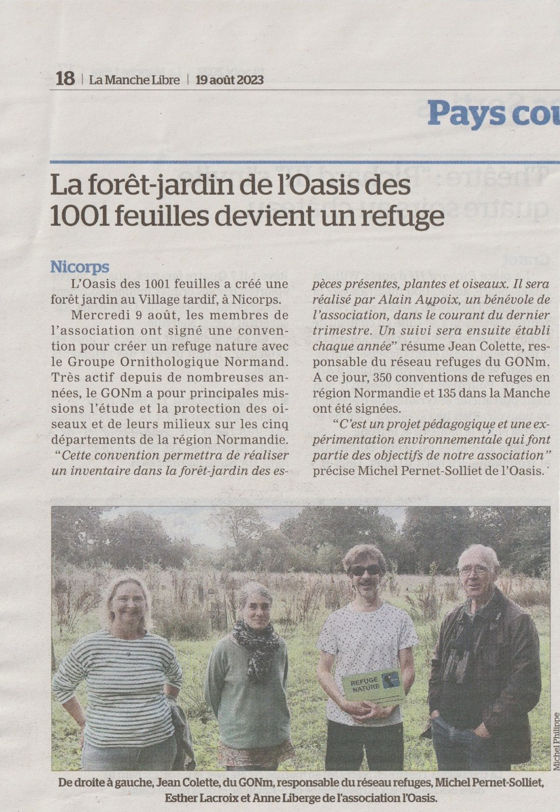 Il est très compliqué de reprendre l'ensemble de l'article d Actu.fr (via Presse de la Manche). C'est la une qui est reprise ici, avec l'amorce de l'article. Le GONm est cité et répond aux questions du journaliste par l'intermédiaire de James Jean-Baptiste. Nous attendons la publication papier pour présenter l'article entier.