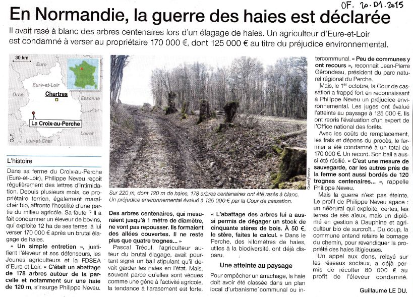Bocage sacrifié, agriculteur sanctionné en Eure et Loir