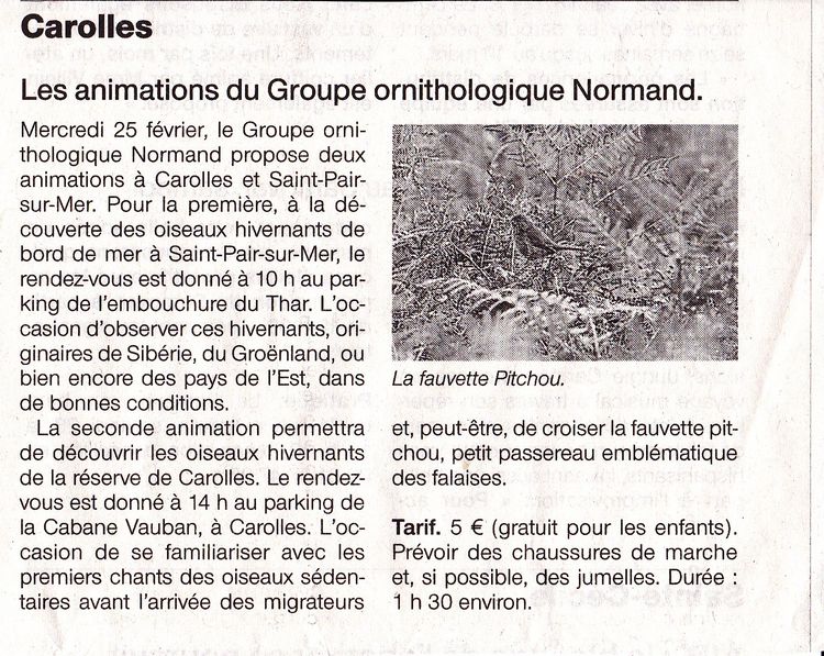 Des animations sont proposées par Sébastien Provost en Baie du Mont Saint-Michel pendant les vacances d'hiver. Cela vaut une annonce dans Ouest-France.