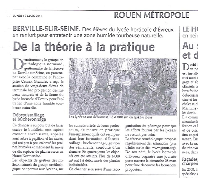 Article paru dans le Paris Normandie de ce jour et relatant un chantier sur la réserve de Berville-sur-Seine (voir le fil des réserves).