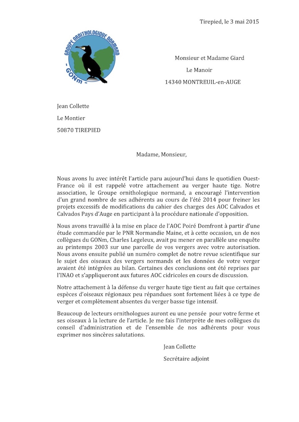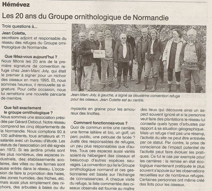 Cet article recoupait deux liens avec le GONm : d'une part notre association s'est mobilisée l'été dernier pour conserver une place honorable aux fruits issus de ces vergers dans la production du Calvados AOC, d'autre part M. Giard avait autorisé notre collègue Charles Legeleux a réaliser des inventaires ornithologiques dans ses vergers il y a quelques années.