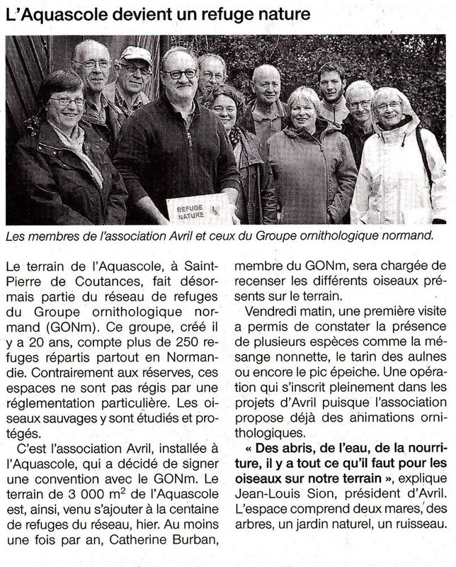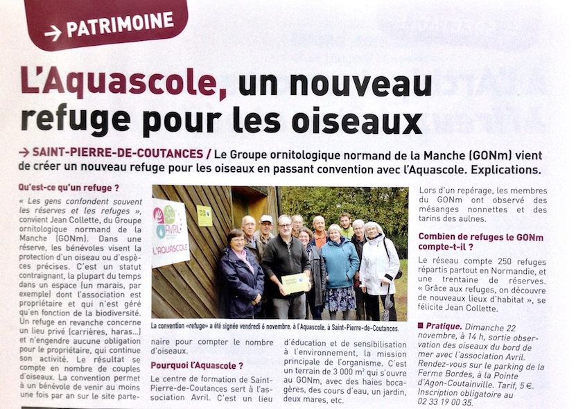 Trois organes de presse étaient présents à l'Aquascole de l'association AVRIL. Voici le troisième article publié sur cette inauguration de refuge. Jean Collette est devenu trésorier : erreur bénigne dans un article complet.