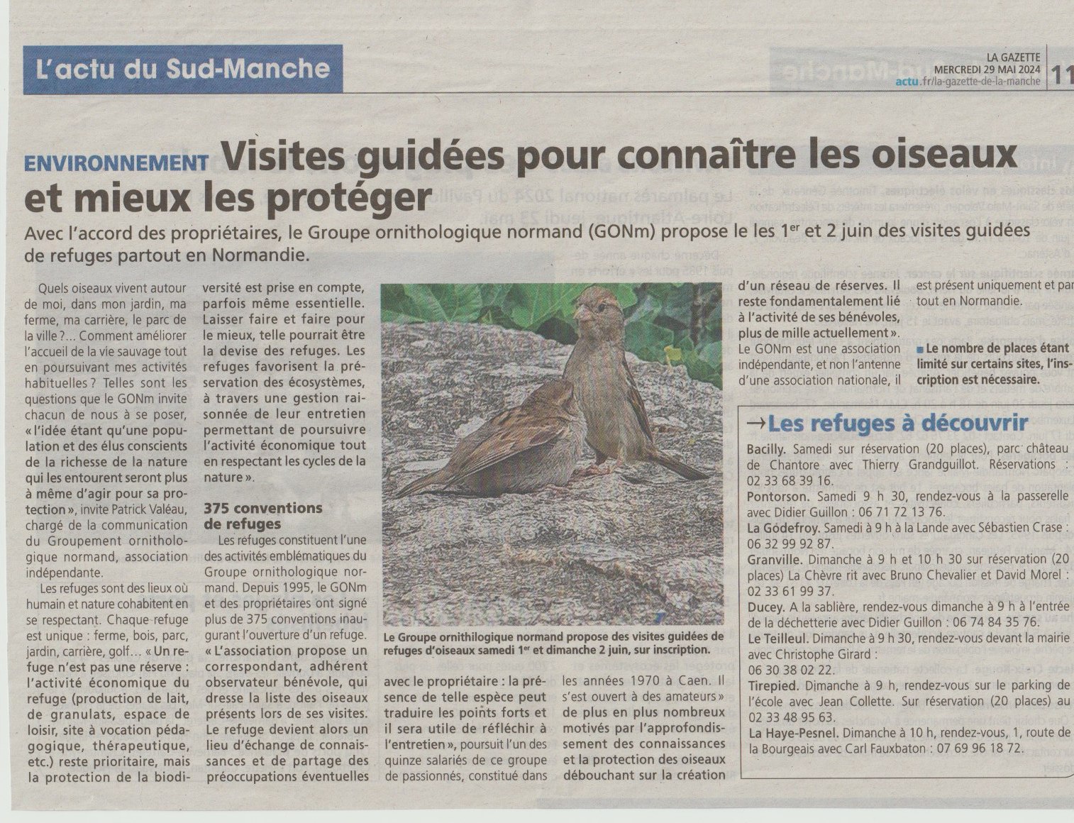 Première salve dans Ouest-France plus préoccupé pourtant par le parcours de la flamme et le 80ème anniversaire du 60 juin 1944 que par les oiseaux.