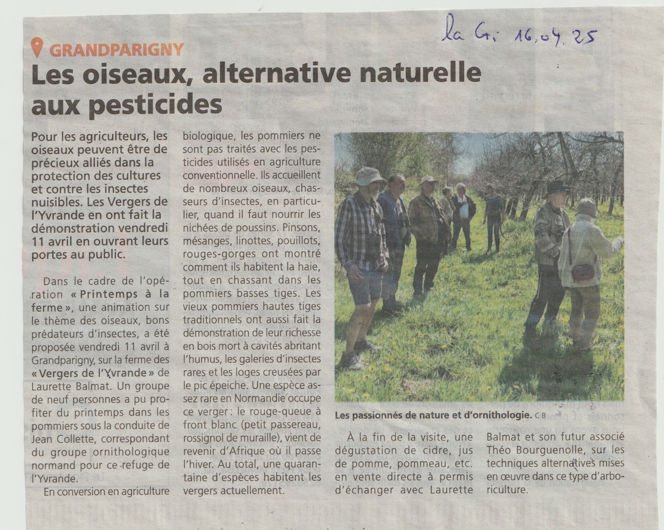 Un verger qui termine sa conversion en AB, une opération "printemps à la ferme", animation proposée aux gestionnaires adhérents du GONm. Trois titres de presse, 4 articles! En compensation de toutes les fois où nous n'arrivons pas à motiver la presse locale...