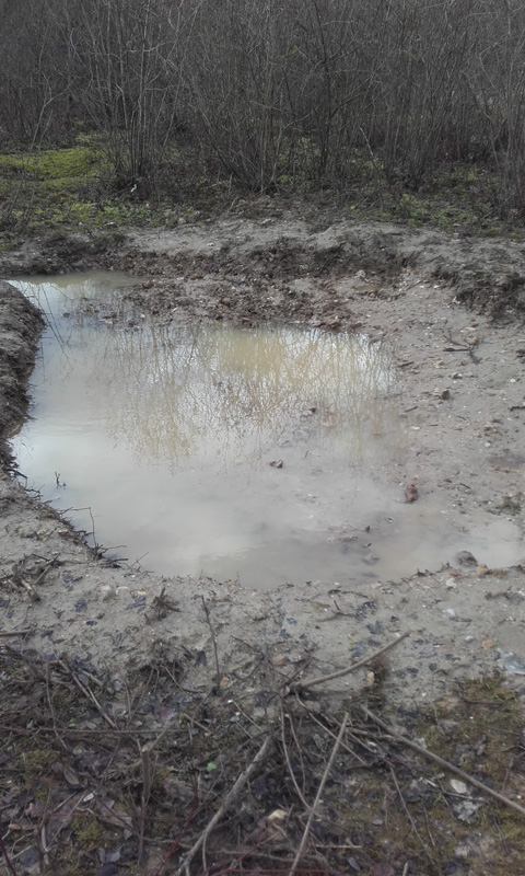 La première action menée a permis de créer une nouvelle mare proche de l’observatoire « Canard » et des mares à batraciens. Grâce au travail particulièrement efficace de ces 15 participants une mare de 5 m2 a été creusée et le surplus de terre fut utilisé pour rehausser le chemin d’accès. Depuis, par percolation, cette mare est partiellement en eau. Le second rendez-vous de début janvier, a été l’occasion de rénover les anciennes mares à batraciens très envahies par la mousse et ce, avant leur sortie pour pondre. Le temps particulièrement froid n’a pas refroidi l’ardeur des participants, bien au contraire et le résultat est là : tandis que certains coupaient des arbres (saules, …) et des branches, d’autres s’activaient à enlever la mousse et la végétation. Les photos ci-jointes montrent bien l’état initial et actuel de la mare. À signaler que ce décapage de surface a été fait à la main de manière à agresser le moins possible le sol, la couche d’argile étant très fine à cet endroit. À la mi-Janvier, 11 personnes ont répondu à l’appel afin de nettoyer la réserve de ses détritus tandis que d’autres nous ont aidés à dégager le chemin des branches et des arbres tombés sur le sentier lors des forts coups de vent de ces dernières semaines.